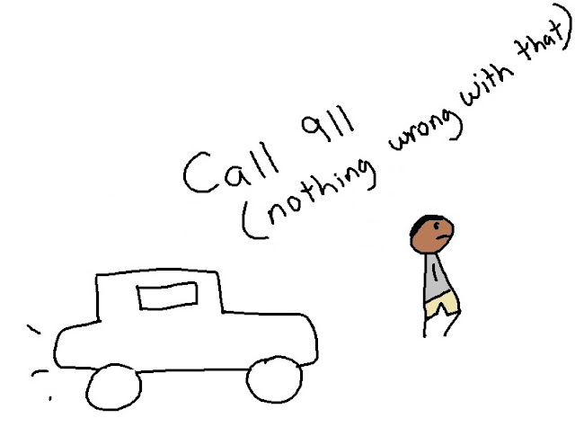 Just to let you know, I don't have a problem with the 911 call. The second he placed his foot on the ground with a gun in his hand is the problem. That set the wheels in motion. If you want to be a hero, but you need a gun in your hand to be one, it's not a good idea. If you have to scream at someone you don't know and chase them, it's also not a good idea.
